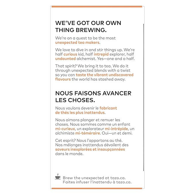 • TRUSTED COMPANY: TAZO Teas are produced without genetic engineering, meeting the Non-GMO Project Standard. Ingredients are expertly sourced giving a taste for you to savor