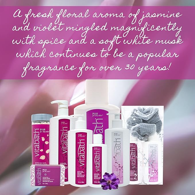 • LUXURY SKIN INDULGENCE - Beautiful floral scent with soft jasmine, violet mingling marvelously with spice and white musk melts into skin while vitamin A, E, and C, rich emollients shea and aloe vera nurture, leaving very dry skin soothed, smelling lovely and touchably soft.