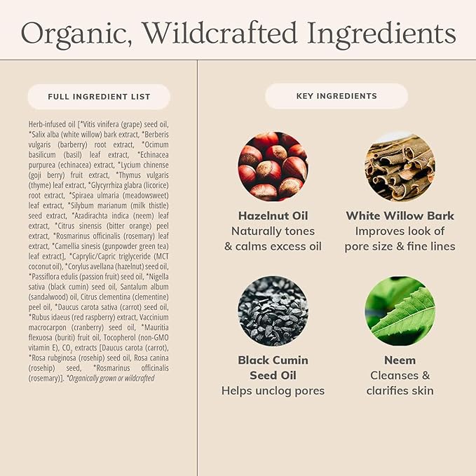 • Key Ingredients: Hazelnut Oil, White Willow Bark, Black Cumin Seed Oil, Neem