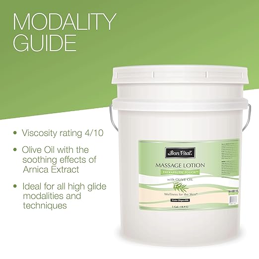 Bon Vital' Therapeutic Touch Massage Lotion with Olive Oil to Repair Dry Skin & Soothe Sore Muscles, Skin Therapy Lotion, Moisturizes Skin During Massages for Smooth, Soft Skin, 5 Gal, Label may Vary