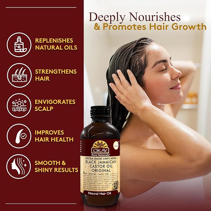 • 100% Natural Jamaican Black Castor Oil - This pure oil supports healthy, nourished hair and scalp health for men and women, ideal for all hair types
