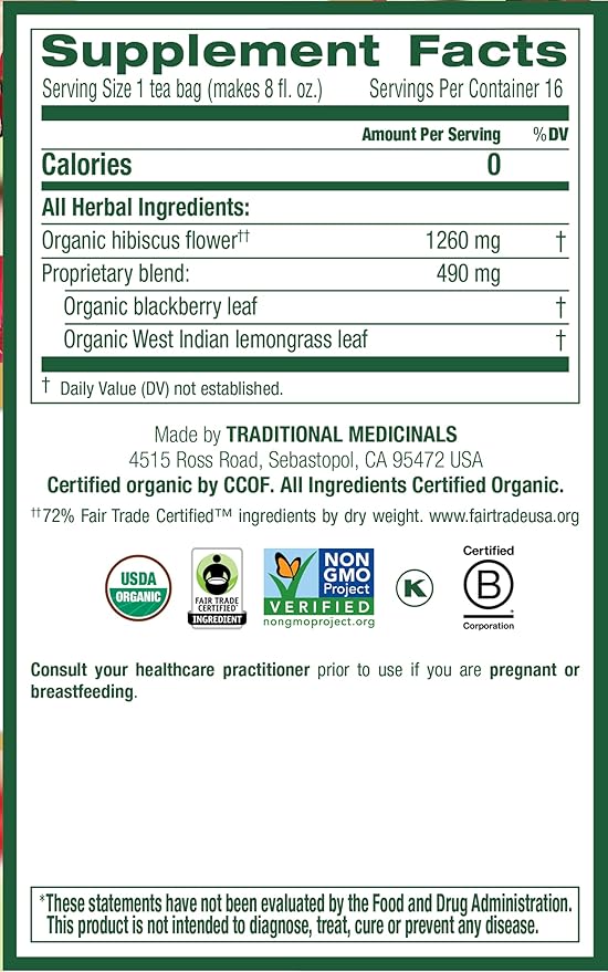 Traditional Medicinals - Organic Hibiscus Herbal Tea (6 Pack) - Supports Heart Health - 96 Tea Bags Total