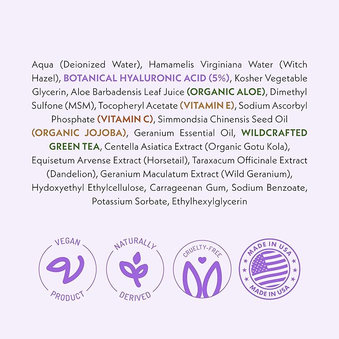 • Replenish & Restore lost moisture, look of firmness & elasticity with our hyaluronic acid facial serum! Our unique formula contains clean, effective and trusted ingredients such as vitamin E, vitamin C, green tea, organic jojoba oil and organic aloe.