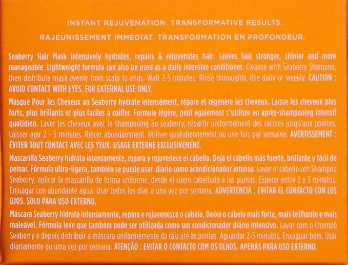 - EASY APPLICATION: Indulge in a hassle-free hair care routine with our simple-to-use product. After shampooing with our Seaberry shampoo, distribute product from scalp to ends. Wait 2-5 minutes and then rinse. Use daily or weekly. Enjoy the convenience of effortless application, and relish the exceptional results that await you.