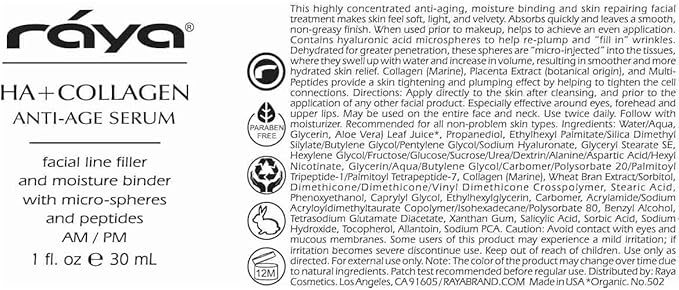 RAYA HA + Collagen Serum (502) | Premium Anti-Aging Serum for Face | Intensive Face Moisturize | Helps Reduce Age Lines and Wrinkles | Firms and Softens Skin for All Ages