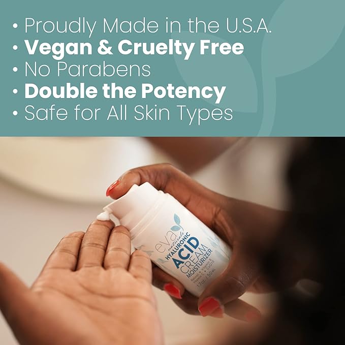 Eva Naturals Hydrating Face Cream with Hyaluronic Acid - Anti-Aging, Wrinkle Face Moisturizer for Women and Men, With Aloe Vera & Retinol For Face - Firming Day & Night Cream (1.7 Fl Oz)