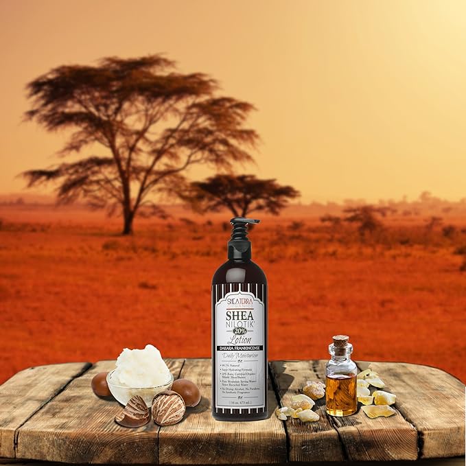 Shea Terra Organics Nilotik’ Shea Butter Ultra-Rich Lotion – Dakara Frankincense | Natural Daily Moisturizer with Astringent Properties to Rejuvenate & Soothe Dry Skin– 16 oz