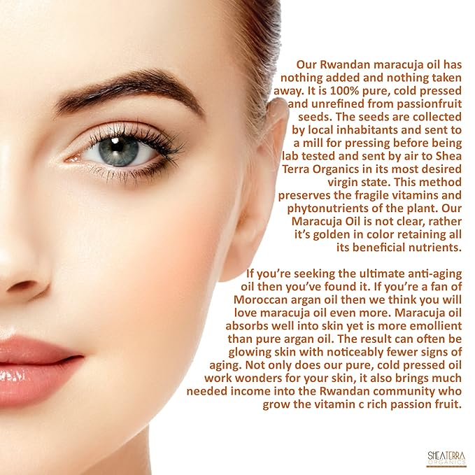 Shea Terra Rwandan Maracuja Cold-Pressed Extra Virgin Oil |All Natural & Organic Emollient Oil Rich in Vitamin C for Super Soft, Glowing, Youthful Skin – 2 oz