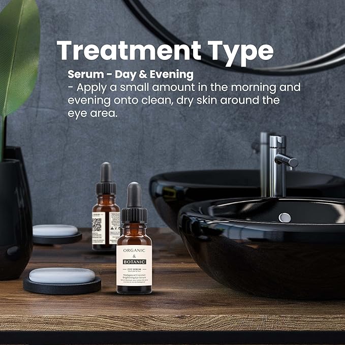 Organic & Botanic Madagascan Coconut Brightening Eye Serum, 30ml. Premium Vegan Skincare For All Skin Types. Made In The UK.