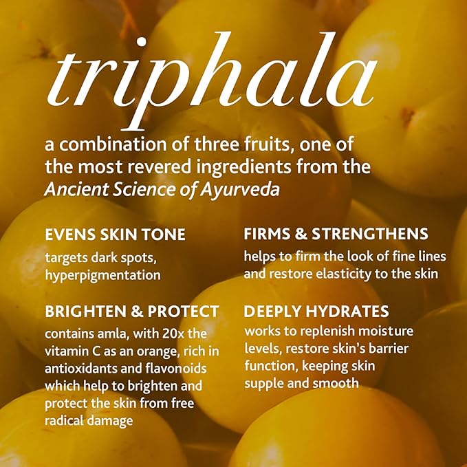 - VISIBLY BRIGHTEN AND TRANSFORM YOUR SKIN. With highly potent ingredients like triphala and gotu kola, 94% of users experienced a minimization in fine lines after 6 weeks of daily use.