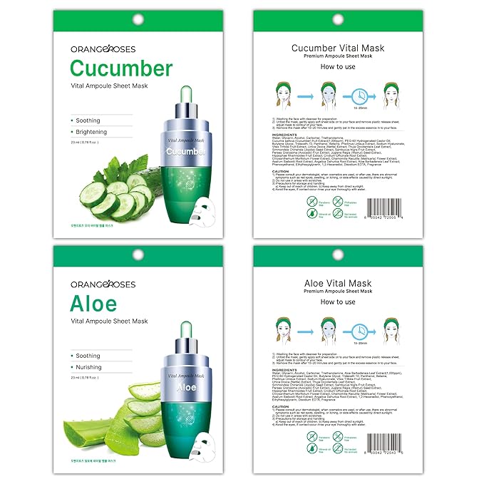【 Orangeroses 】 30 Pcs Combo Pack Vital Ampoule Sheet Mask, Korean Facial Skincare Sheet | Simple & Effective Skincare Routine | Moisturization | Wrinkle Care | Brightening