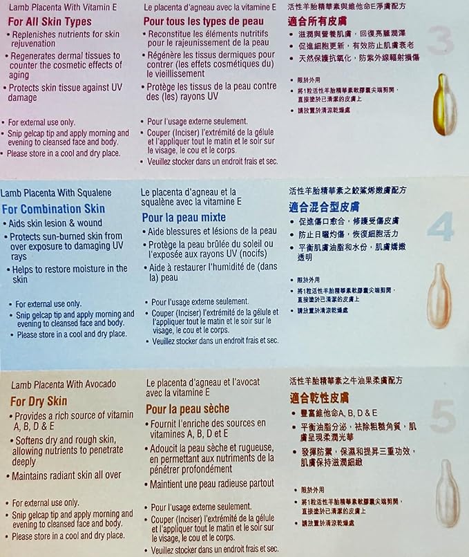 Lamb Placenta & Avocado with Vitamin E Facial Oil, 200 Gelcaps, Bill Natural Sources