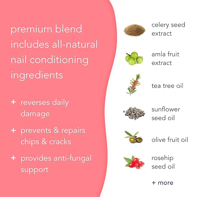 • NATURALLY MOISTURIZING: With each drop, your nails drink in a blend of more than a dozen natural moisturizing ingredients, including Sunflower Seed Oil, Olive Fruit Oil, Rosehip Seed Oil, Castor Seed Oil, Vitamin E & Amla Extract to restore nails and hydrate cuticles while Tea Tree Oil offers anti-fungal properties for improved overall nail health.