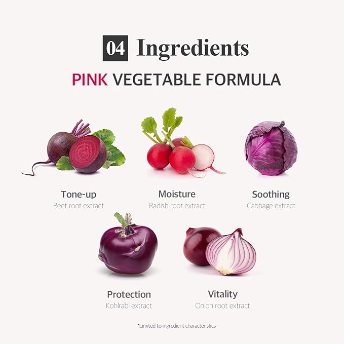 • Pink Vegetable Energy : This pink-hued essence is enriched with Beet Root Extract, Radish Root Extract, and Kohlrabi Extract to deeply nourish and hydrate the skin, promoting a youthful and radiant complexion.