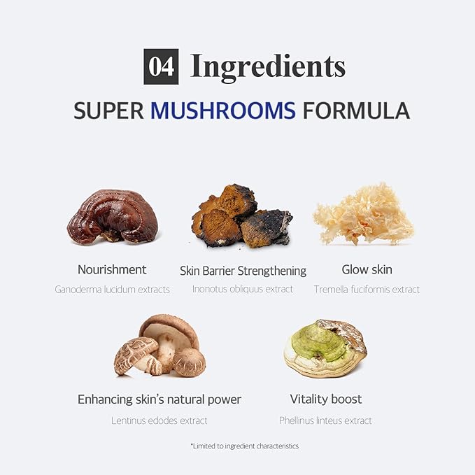 • Super Mushroom Eye Mask : Enriched with a powerful blend of five mushrooms and beta-glucan, deeply hydrates and firms the delicate eye area, leaving it nourished and revitalized.