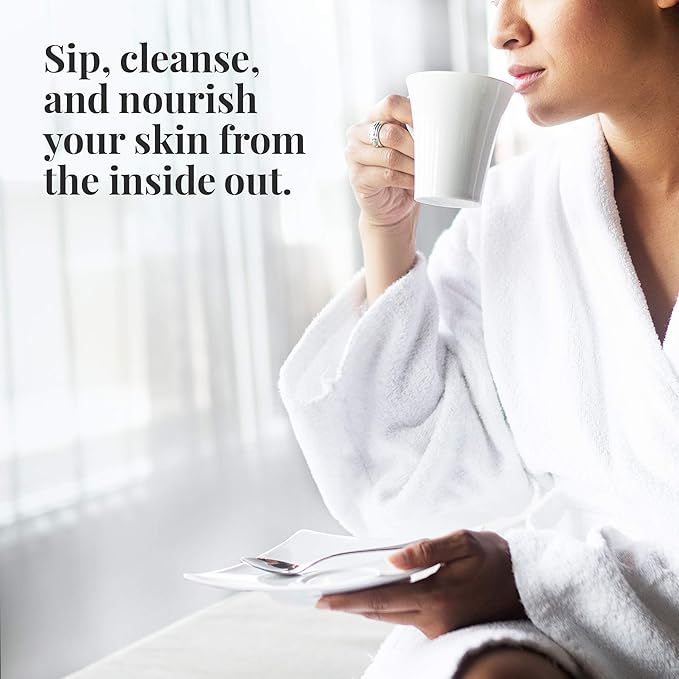 • DAILY BEAUTY HERBAL TEA: This hydrating, violet-hued herbal infusion contains a proprietary blend of collagen-promoting botanicals that can help improve your skin’s complexion.