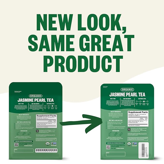 FGO Organic Jasmine Pearl Green Tea, Four Ounce, Loose Leaf, Resealable Bag, Packaging May Vary (Pack of 1)