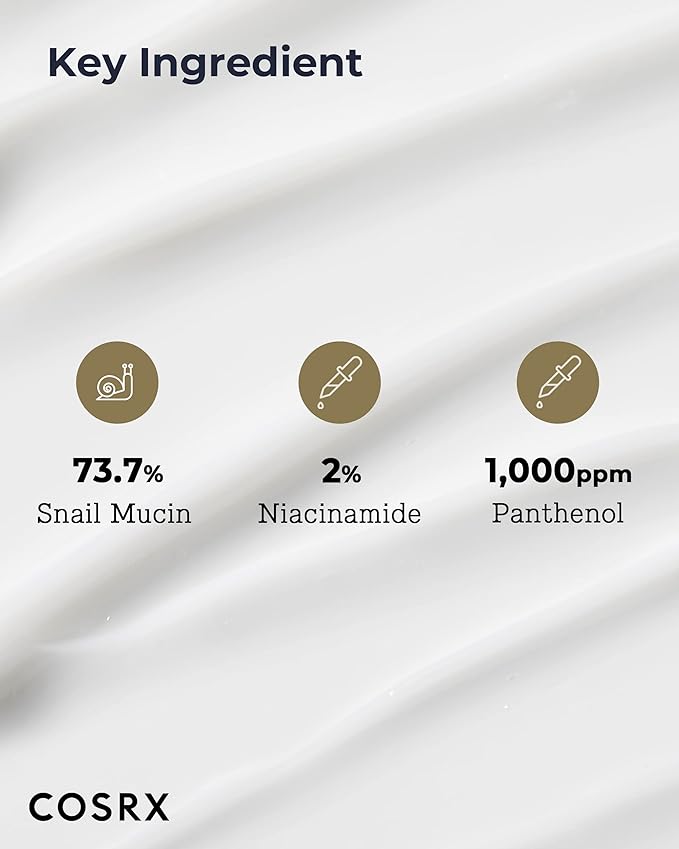• Key Ingredients: 73.7 Snail Mucin (Snail Secretion Filtrate) rejuvenates the skin, 2% Niacinamide helps lighten the appearance of dark circles, 5 Peptides Complex and Adenosine help firm skin and reduce wrinkles and fine lines.