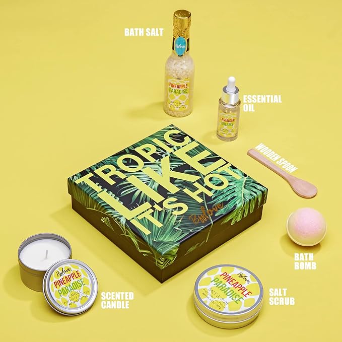 • A Best Bath Set: This bath spa set includes self care with a wonderful assortment of products for the ultimate spa experience as tropical Hawaii without leaving your home