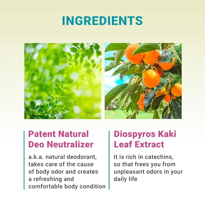 • BODY ODOR CARE: Natural Deo Neutralizer targets odor at the source for a fresh feel. Diospyros Kaki Leaf Extract, rich in catechin, helps eliminate unpleasant smells and keeps your body feeling clean.