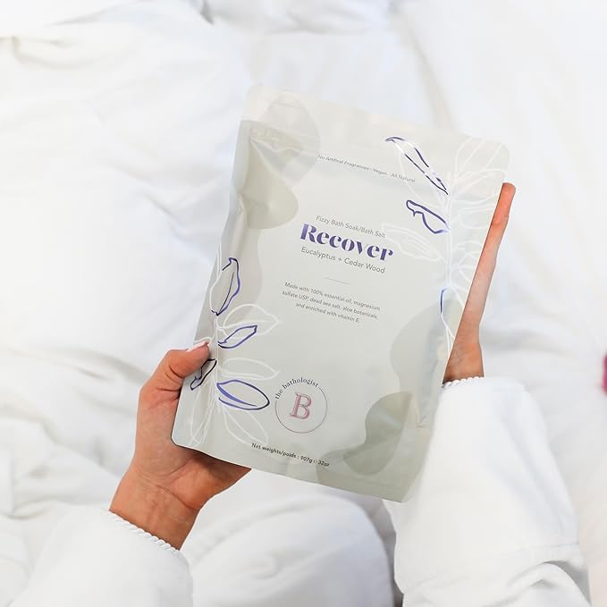 The Bathologist Recover Fizzy Bath Soak, Eucalyptus + Cedar Wood, Made with Essential Oils, Magenesium Sulfate, Dead Sea Salt & Aloe Botanicals, Approximately 5 Baths, 32 oz
