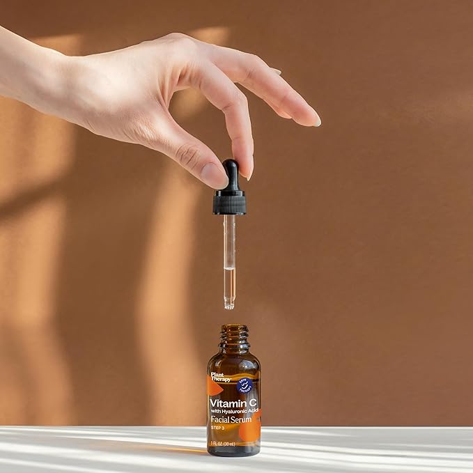 Plant Therapy Vitamin C Face Serum & Hyaluronic Acid, Anti-Aging Serum with Ferulic Acid, Vitamin E, Serum for Fine Lines & Wrinkles, 1 oz