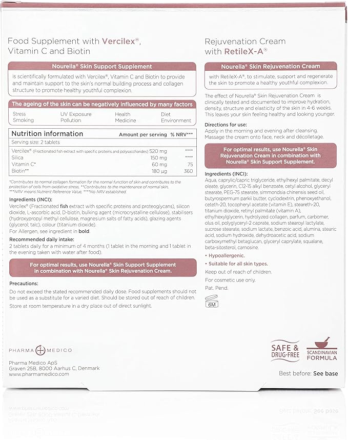 • 1 month supply (50ml rejuvenation cream + 60 food supplement tablets)