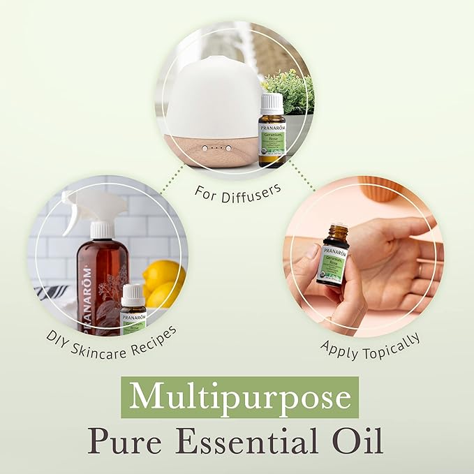 • 100% PURE ESSENTIAL OIL - This Rose Geranium essential oil is distilled and pressed from solely sustainably harvested organic plants. All of Pranarom's products are sourced from organic farms from across the globe to provide only the finest, organic ingredients.