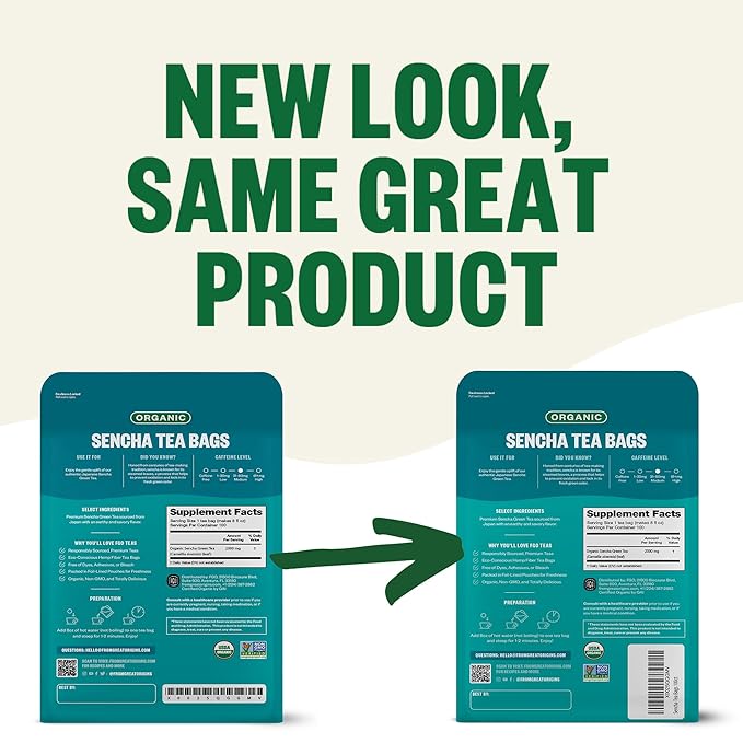 • ORGANIC SENCHA TEA - The tea is filled into tea bags and packed into foil-lined kraft bags in California