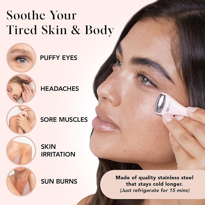 Kitsch Mini Facial Roller & Ice Face Roller Skin Care Tool Set for Women - Face Massager for Puffy Eyes, Cold Therapy, Lymphatic Drainage Massager, Self Care Gifts for Women & Men - Blush