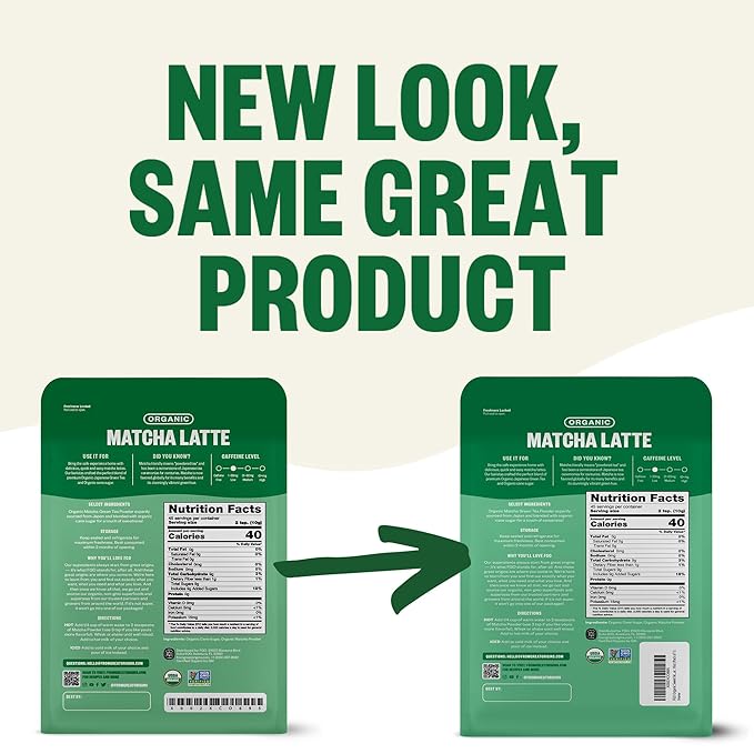 FGO Organic Matcha Latte Powder, 16 Ounce Bulk Resealable Bag, Japanese Matcha with Organic Cane Sugar, Lightly Sweetened, Packaging May Vary (Pack of 1)