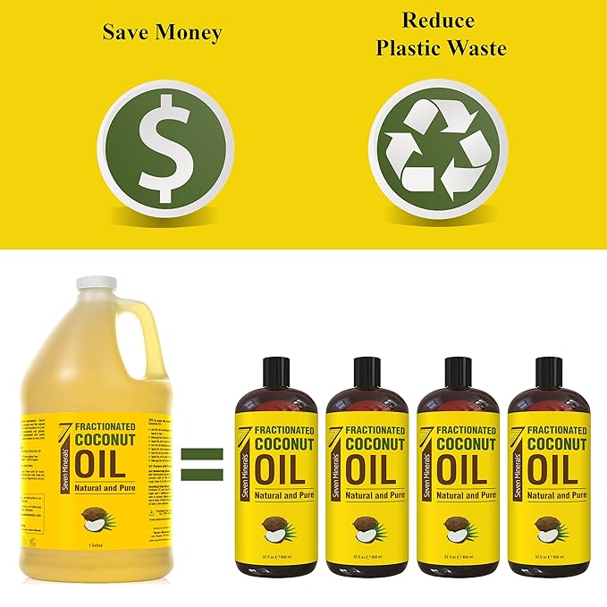 Seven Minerals Pure Fractionated Coconut Oil - 1 Gallon - Non-GMO, 100% Natural, Lightweight Massage Oil for Therapy on Skin, Hair, More - Perfect Bulk Carrier Oil for Essential Oils (128 fl oz)