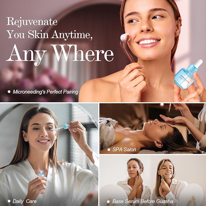 - Safe & Hypoallergenic Microneedling Serum: Our Pure Hyaluronic Acid Serum combined with B5, is specially for microneedling. It deeply moisturizes and soothes the skin, enhancing skin's natural barrier. Perfect for maximizing the benefits of microneedling