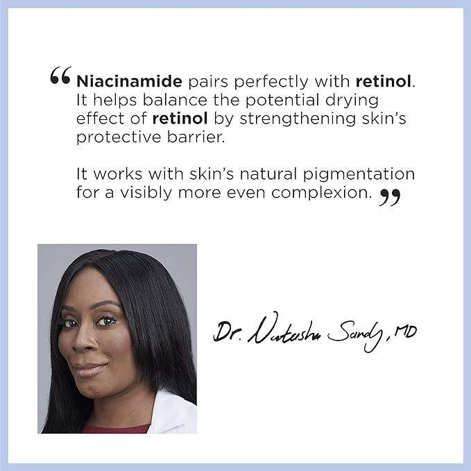 - Soothing Formula: Features Retinol, a top dermatologist recommended ingredient, plus Niacinamide, a nutrient that helps brighten skin for a healthier-looking complexion; Balanced with soothing Panthenol, Glycerin and Hyaluronic Acid