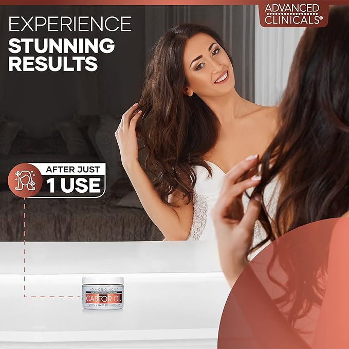 • Never Too Late – Healthy hair is still possible. Restore your hair’s softness, strength, and shine with Advanced Clinicals’ Castor Oil Soften + Hydrate Hair Mask, formulated with vegan ingredients!