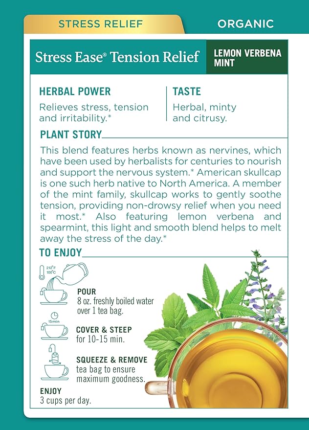 • Organinc Cup of Calm Tea: This calming tea helps you relax when you need it most.* Softly floral with hints of lavender and mint.