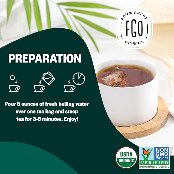 FGO Organic Elderberry Tea, 20 Count, Eco-Conscious Herbal Tea Bags, Resealable Bag, Caffeine Free, Packaging May Vary (Pack of 1)