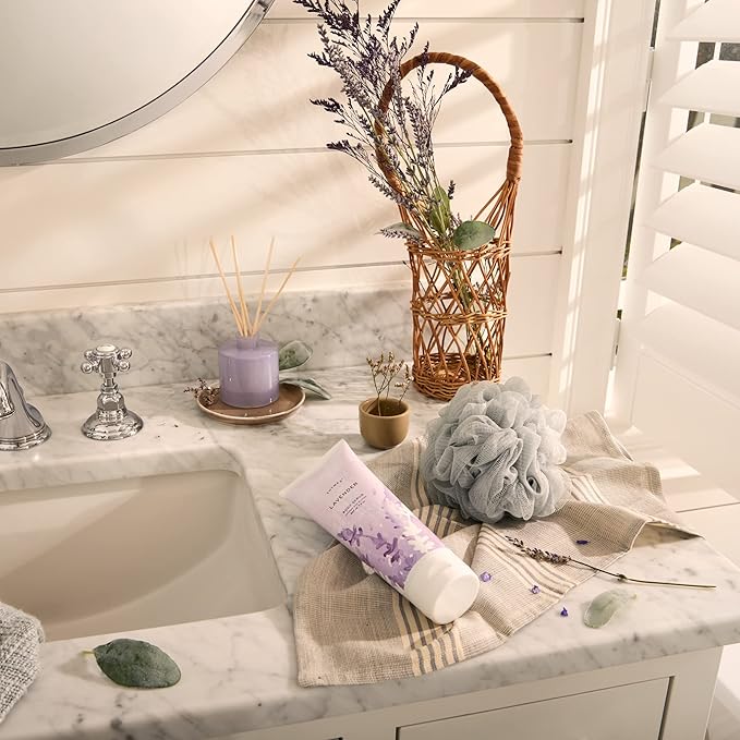 • Thymes Lavender Body Scrub: A soothing, exfoliating body scrub infused with hydration-boosting sodium hyaluronate and argan shell powder that gently cleanses to reveal soft, renewed skin while argan oil soothes and moisturizes.