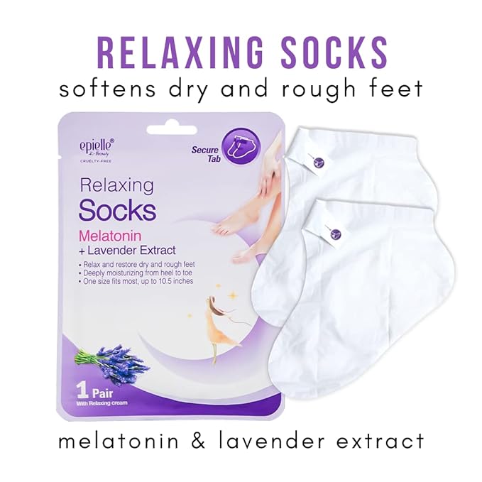 • Ultimate Relaxation for Hands and Feet: Treat your hands and feet to a calming experience with epielle’s Relaxing Melatonin Socks and Gloves. Infused with a nourishing cream, they leave your skin feeling soft, silky, and utterly pampered.