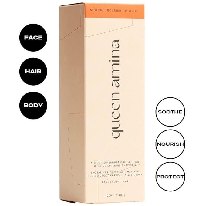 Queen Amina African Superfruit Oil, Face Oil, Body Oil, Hair Oil, Cleansing Oil, Makeup Remover, Scalp Treatment, Beard Oil, Jojoba, Argan, Geranium, All Skin Types, 3.4oz, 100mL