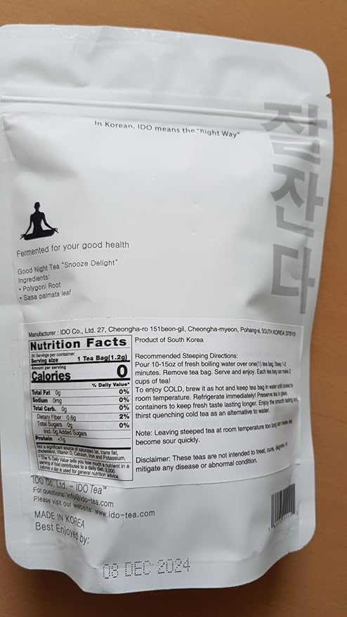 IDO TEA Snooze Delight Good Night Tea | Organic Herbal Bedtime & Calming Caffeine Free Tea with Jeju Dwarf Bamboo & Red Polygoni Root (30 Tea Bags)
