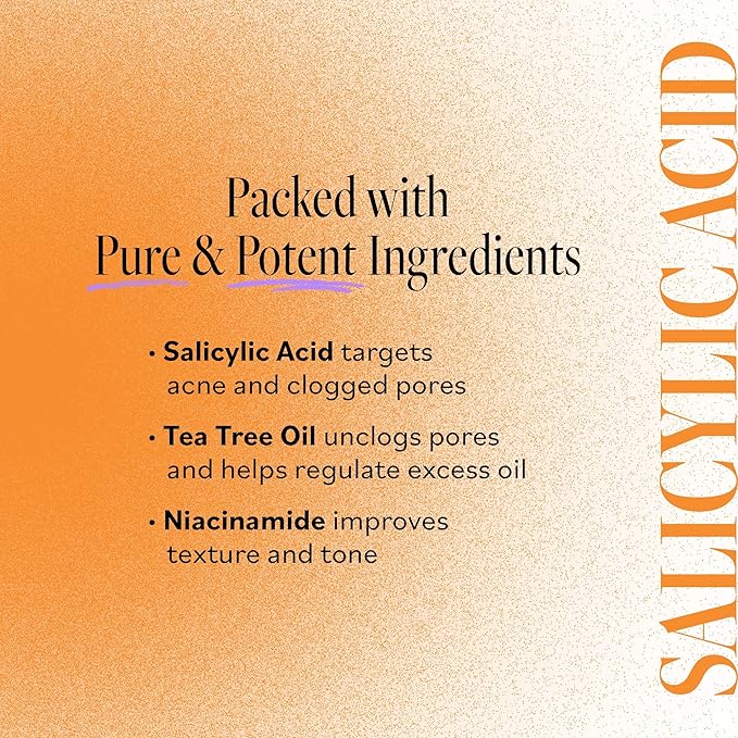 • NATURAL FORMULA: Packed full of powerful natural ingredients: Salicylic Acid, a beta hydroxy acid, helps skin cells shed more easily. Tea Tree Oil, Willow Bark Extract, calming Lavender, and Chamomile help to unclog pores and minimize redness
