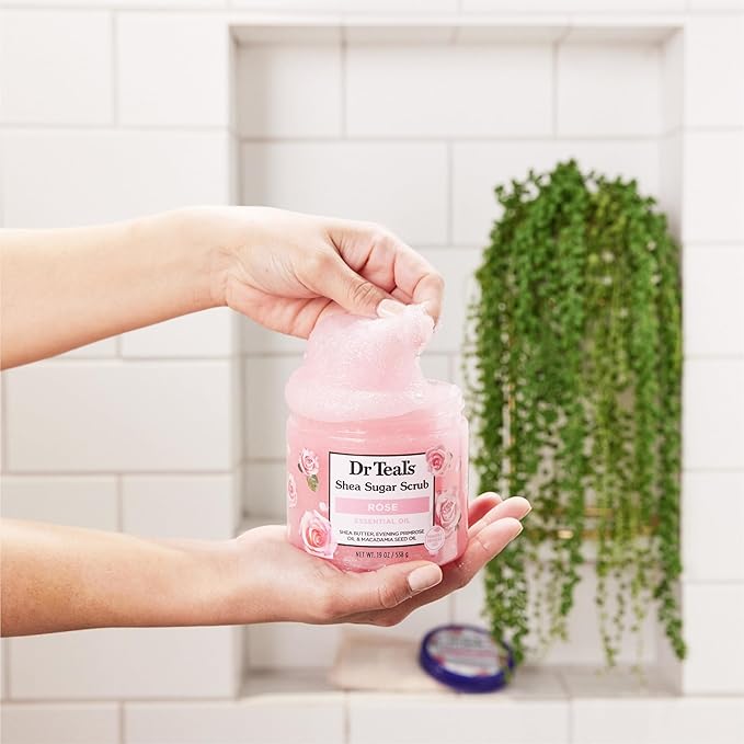 Dr Teal's Shea Sugar Body Scrub, Rose with Essential Oil, 19 oz (Pack of 3)