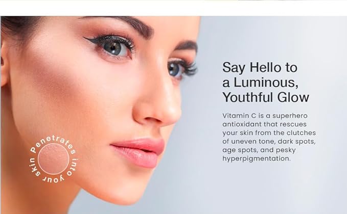 • INFUSED WITH VITAMIN C: A powerful antioxidant that helps brighten and even out skin tone, reducing the appearance of dark spots, age spots, and hyperpigmentation.