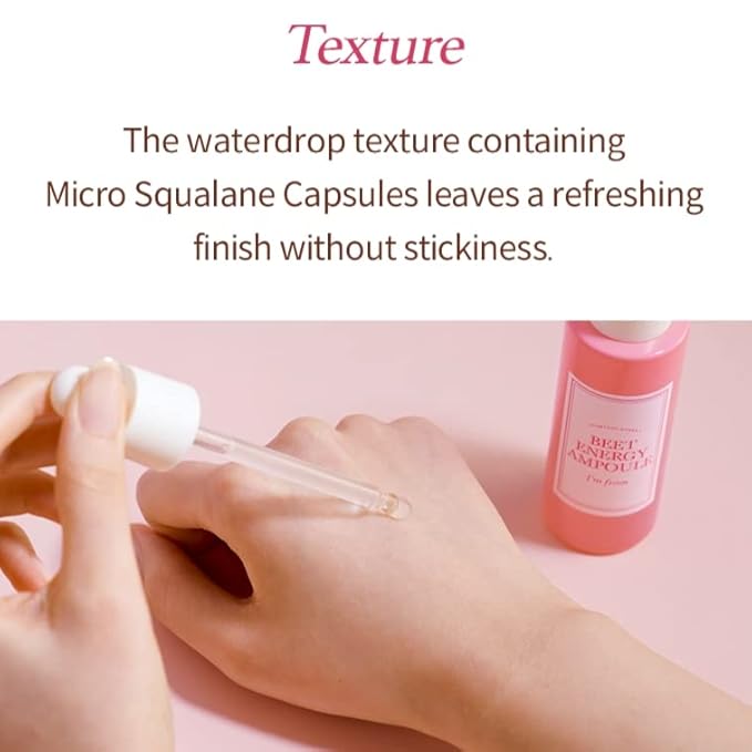 I'm from Beet Energy Ampoule, 81.5% red beet extract, Intensive vitalization care, Micro Squalane Capsules for deeper hydration, rich in minerals and betaine, radiance, nourishment - 30ml