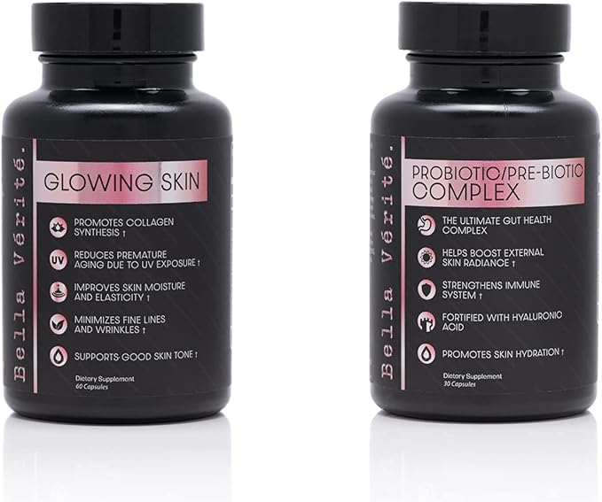 Bella Vérité. Probiotic/Prebiotic Complex for Women and Glowing Skin Collagen Boosting Complex Bundle, Vegan Skincare Set, 30 Day Supply