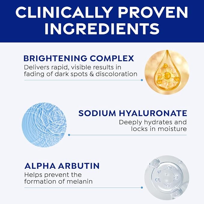 • SEE RAPID RESULTS: Skin Brightening Complex is clinically proven to minimize discoloration and boost luminosity; Sodium Hyaluronate provides superior hydration; Alpha Arbutin, a gentle plant extract, helps reduce the appearance of dark spots