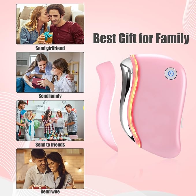 Aikertec Heat Electric Gua Sha Tool, 4-in-1 Multi-Function Anti-Aging Face Massager, Facial Contouring & Firming, Double Chin, Awakening Skin, Deep Treatment