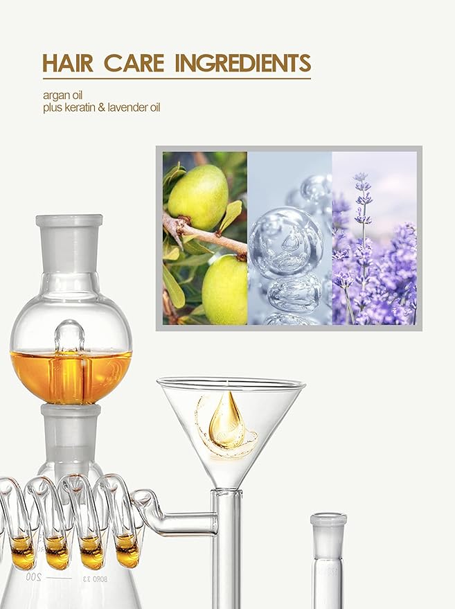 - ✅PREMIUM QUALITY NATURAL AND SAFE INGREDIENTS– Made from the finest quality, high-grade, and pure Moroccan argan oil, this hydrating argan oil hair mask & deep conditioner also contains premium hydrolyzed keratin for nourishment and lavender oil for fragrance. This argan hair mask is free from any harmful substances, sulfates, or parabens is completely safe to use, and is sure to be extremely gentle on your hair.