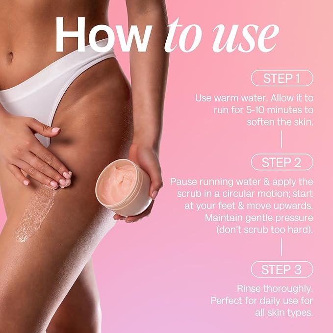 • TREAT YOUR SKIN TO GENTLY, DAILY EXFOLIATION Designed for daily use, our body scrub can be added to your shower routine to give your skin a deeper cleanse, exfoliating dead skin cells and build up on the skins upper surface.